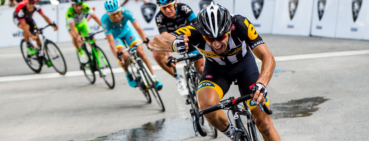 进入爬坡路段后,一度侥幸单飞的利亚姆在弗雷泽山半山腰的位置被抓回。天空车队和哥伦比亚车队从最后7公里的窄路处开始领骑大团。